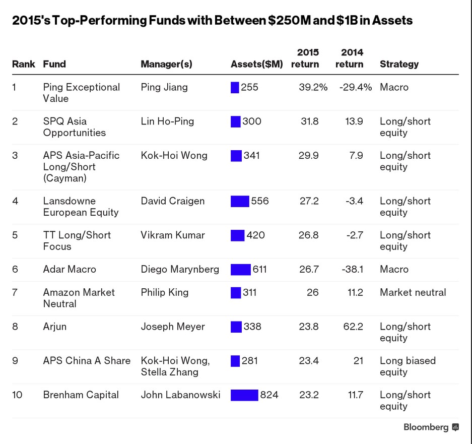 قائمة صناديق التحوط ذات الأداء الأفضل في عام 2015