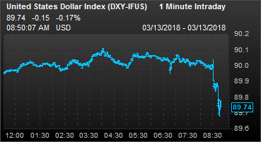 انخفض مؤشر الدولار الأمريكي ، والذي يقيس العملة الأمريكية مقابل سلة من العملات الأخرى ، بنسبة تصل إلى 0.24٪ فور صدور التقرير. كان آخر تداول أسفل 0.27 في المئة عند 89.66.