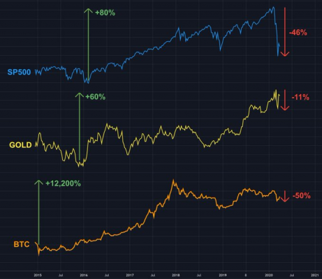 شارك ويلي وو، محلل العملات المشفرة، مؤخرًا رسمًا بيانيًا مثيرًا للاهتمام حول الانهيار الأخير وكيف يقارن البيتكوين مع الذهب و مؤشر اس اند بي 500.